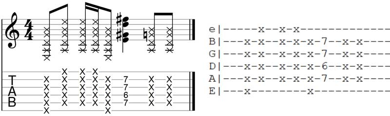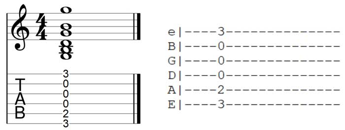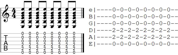 This is the first type of Guitar TAB that became popular online. Text-based Guitar TAB is written in a simple text file as shown below.