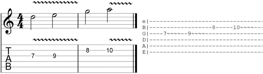 So if you don’t see a vibrato symbol in TAB but you can hear it in the song, that’s why it wasn’t noted.