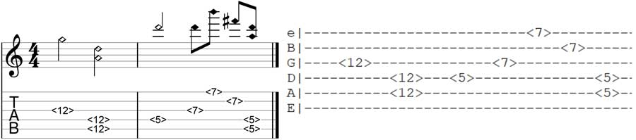 As you can see, tapping in text-based Guitar TAB can get really confusing and hard to read. When I was learning guitar I would print out the TAB and use a highlighter to clearly see which notes were tapped.
